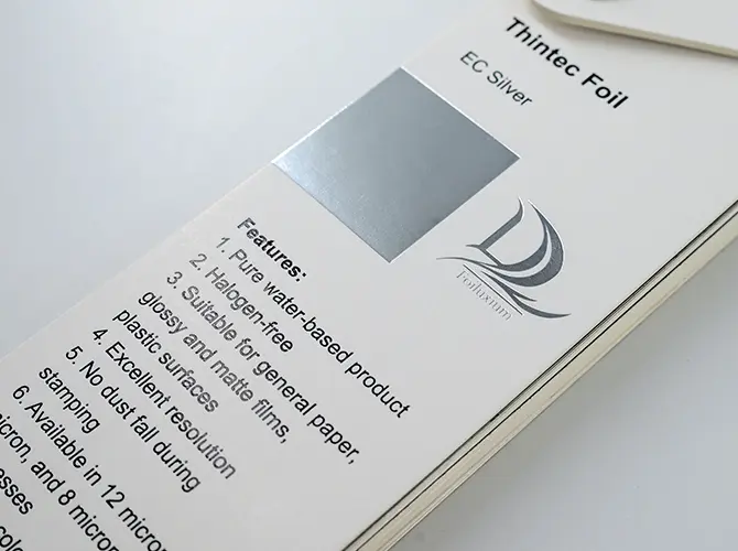 An der Spitze der umweltfreundlichen Drucktechnologie steht Thintec Foil als Beweis für Innovation und Umweltverantwortung. Mit Nachhaltigkeit im Kern entwickelt sich unsere bahnbrechenden Hot Stamping -Folien in ultradünnen Abmessungen - 10 Mikrometer und 8 Mikrometer -, setzen neue Standards für die Effizienz und eine verringerte Verwendung in der Branche.