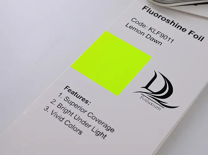 Die Fluoroshinfolie ist ein bahnbrechendes fluoreszierendes Material für heiße Stempelanwendungen. Es stellt einen signifikanten Sprung nach vorne bei Verpackungs- und Dekorationstechnologien dar und bietet überlegene Helligkeit, Farbkonsistenz und Haltbarkeit. Unabhängig davon, ob Sie die visuelle Anziehungskraft verbessern oder funktionale Elemente hinzufügen müssen, ist Fluoroshinfolie die perfekte Wahl.